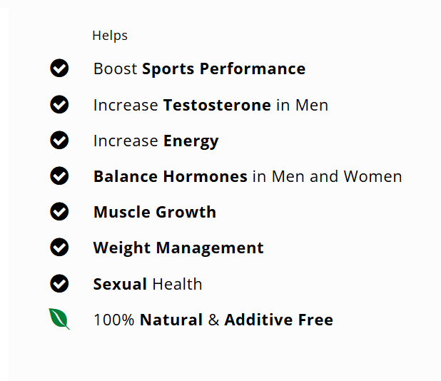It may also help with muscle growth, fat loss, sports endurance, energy levels, libido, fertility, and the symptoms of menopause or the menstrual cycle.